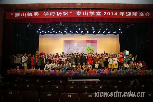 [本站讯]11月30日,“泰山毓秀•学海扬帆”——泰山学堂2014年迎新晚会在中心校区圣昆仑音乐厅举行。中国科学院院士、泰山学堂院长彭实戈教授,本科生院院长胡金焱,泰山学堂副院长吴臻、张树永,公安处副处长类淑毅、新闻中心副主任张青、校团委副书记李一楠、外国语学院党委副书记高弟、物理学院党委副书记吴天柱等嘉宾出席晚会,共享视听盛宴。