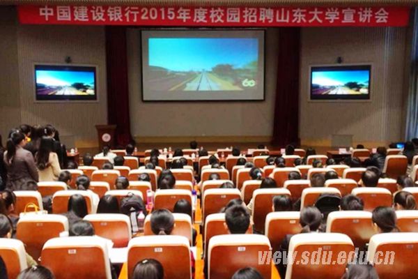 [本站讯]11月4日,中国建设银行在山东大学中心校区举行针对2015届毕业生的校园招聘宣讲会。山东大学校领导方宏建,建行山东省分行副行长王晓永出席宣讲会。