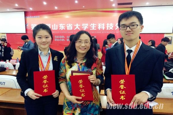 经前期选拔,来自全省50多所高校的精英晋级本次比赛复赛与决赛。复赛内容包括中英文科技文献翻译、自我介绍、即兴演讲以及互动问答。前九名同学进入最终决赛。决赛内容包括才艺表演,即兴讲演,看图讲故事以及互动问答。经过两天的激烈角逐,刁文卿凭借出色的口语水平,缜密机智的逻辑思维以及成熟稳定的台风获得了评委的一致好评,获得了专业组特等奖。指导教师高云获得优秀指导教师奖,山东大学还获得了优秀人才培养奖。