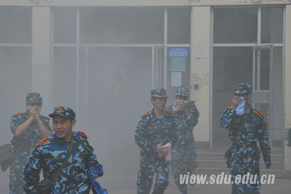 紧急疏散逃生演习是山东大学学生军训团每年的必修课目,旨在通过模拟火场疏散和逃生演练,增强学生的消防安全意识,提高学生应对地震、火灾等紧急情况的逃生能力。除演习外,学校每年还通过组织学生观看《大学生避险与自救》教学视频等在新生中开展系列安全主题教育,提高学生避险自救能力。本次演习由2014级学生军训团组织,党委学生工作部、公安处、学生就业与发展指导服务中心、校医院、兴隆山校区管理办公室等部门相关负责人参与现场指挥,2014级全体新生参加演习。