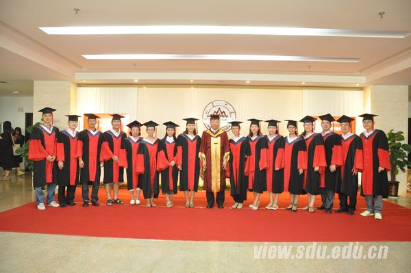 [本站讯]6月24日上午,经济学院2014年毕业典礼暨学位授予仪式在中心校区知新楼举行。经济学院院长李长英教授为每一位毕业生颁发学位证书并合影留念。学院党委书记王秀丽主持典礼。