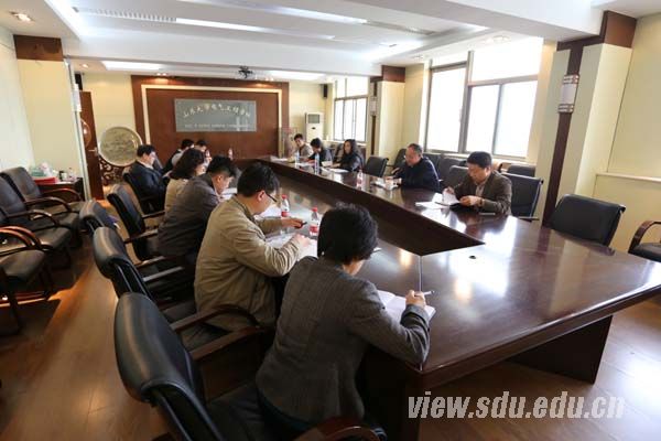 王钧传达了学院山东大学第二届教职工代表大会第五次会议精神,并向代表们详细介绍了老师们普遍关心的青岛校区整体规划、建设进度和学科布局等方面的情况。