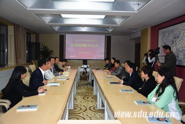 [本站讯]4月21日下午,山大河南校友会向母校赠书仪式在中心校区明德楼举行。河南校友会秘书长、文心出版社总编辑马保民校友,山大党委宣传部部长李平生、校友工作办公室主任刘学祥、法学院党委书记盖玉强出席仪式。仪式由刘学祥主持。
