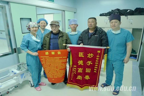 [本站讯]1月18日,一位患者及其家属拿着锦旗、感谢信来到齐鲁医院青岛院区,向医院护士李朕表示感谢和表扬。