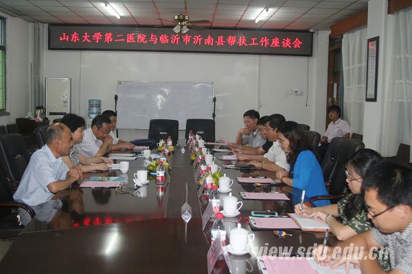 [本站讯]9月10日下午,第二医院与临沂市沂南县举行帮扶工作座谈会,双方就医疗卫生帮扶工作等具体事宜进行了交流。第二院党委书记曲波主持座谈会。