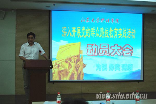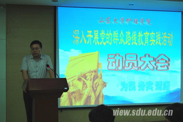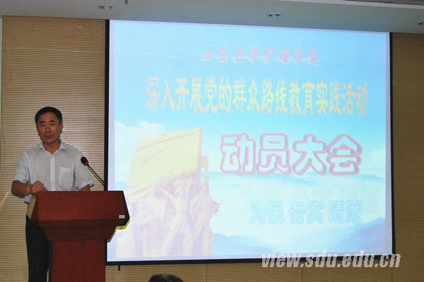 [本站讯]7月9日下午,护理学院召开深入开展党的群众路线教育实践活动动员大会。山东大学党的群众路线教育实践活动第十督导小组组长、齐鲁医学部组织人事处处长王秋生出席会议并讲话,护理学院党委书记袁魁昌作动员报告,会议由护理学院院长贾继辉主持。