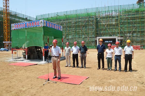 [本站讯]6月30日上午,山东大学青岛校区第一个建筑组团——教学楼E区主体结构封顶仪式在施工现场举行。