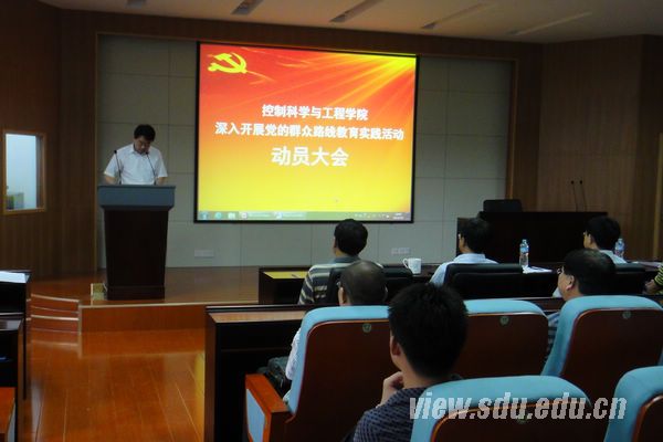 [本站讯]7月9日上午,控制科学与工程学院深入开展党的群众路线教育实践活动动员大会在千佛山校区教学四楼报告厅举行。山东大学教育实践活动第3督导组组长、校党委统战部部长戴智章出席动员大会并讲话。控制学院党委书记王志明主持会议并作动员讲话。督导组其他成员及学院党政班子成员出席动员大会。