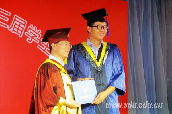 李术才向顺利完成学业的毕业生表示祝贺,并回顾了土建学院近几年的发展成就以及学院在学科建设、学位点建设、科学研究、人才队伍、办学条件、学生培养等方面的长足进步,感谢大家伴随学院一同成长。他说,如何成为社会上的领袖级人才,如何为国家做更大贡献是摆在毕业生面前的紧要问题,他寄语同学们第一要有信心,有理想,有抱负,敢于去闯;第二要适应社会,提高承受挫折的能力和毅力;第三提高自己的情商;第四要听从命令,服从组织需要。李术才向毕业生推荐了《思路决定出路》、《西点法则》、《细节决定成败》等五部书。他还鼓励大家要立足社会,敢于竞争,做值得骄傲的山大人,成为校长故事里的主人公。教师代表姚占勇教授发言,表达了学院老师对学生们的殷切期望与嘱托。学生代表刘伟总结了四年的大学生活,表达了自己对老师的真挚谢意和自己将努力成为栋梁之才的决心。硕士研究生吴明磊带领全体毕业生宣誓,表达了他们立志成才、不忘母校的决心。伴随着激昂的《山东大学校歌》,受徐显明校长委托,李术才为参加毕业典礼的每一位毕业生颁发了学位证书。毕业典礼在优美的旋律中落下帷幕。毕业典礼后,老师们与全体同学合影留念。