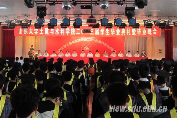 [本站讯]6月25日,土建与水利学院2013届学生毕业典礼暨毕业晚会在兴隆山校区大学生活动中心举行。土建学院院长李术才、院党委书记胡岩,学术委员会成员及院领导班子成员、教师代表和全体毕业生参加了活动。毕业典礼由2009级土木工程专业本科生王楠主持。