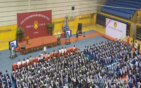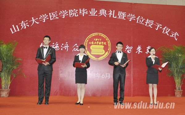 [本站讯]6月24日,医学院2013届学生毕业典礼暨学位授予仪式在趵突泉校区举行。齐鲁医院院长李新钢、齐鲁医学部教学科研处处长易凡,各附属及教学医院嘉宾、医学院领导和各所(室)负责人等出席毕业典礼。典礼由医学院党委书记陈鑫主持。“长江学者奖励计划”特聘教授、医学院院长龚瑶琴向参加典礼的博士、硕士、本科毕业生等共计832人授予学位并合影留念。百余位学生家长进行了观礼。