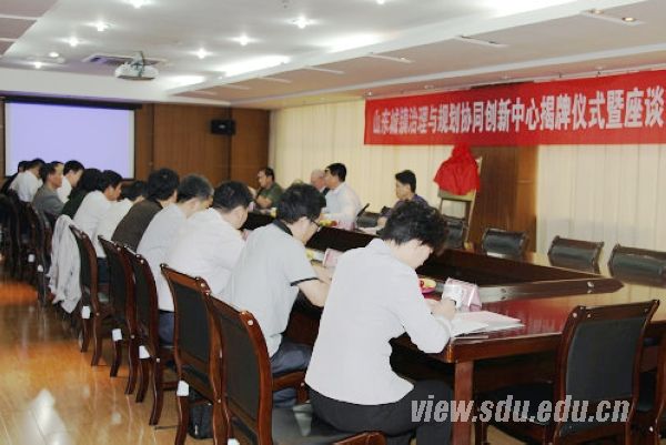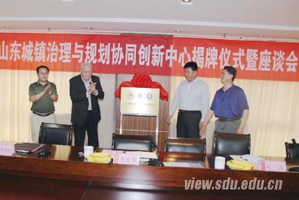 青岛理工大学副校长李国华在致辞中介绍了学校的历史和发展现状,提到今年正值青岛理工大学60周年校庆,“协同创新中心”的成立十分及时,为青岛理工大学与兄弟院校的学习交流搭建了良好平台。青岛理工大学更有理由、更有条件支持建筑学院的发展,他表示,希望通过山东大学、山东师范大学、青岛理工大学的合作把“山东城镇治理与规划协同创新中心”打造成山东省协同创新中心的样版。山东大学学术研究部项目主管王广昌在致辞中表示,此次协同创新中心的成立实现了三所高校的优势互补,同时符合国家城镇化建设发展的重大需求,体现了国家提出的面向需求、区位导向、优势互补的发展要求。山东大学会以“山东省城镇治理与规划协同创新中心”成立为契机,会同山东师范大学、青岛理工大学,面向山东,最终实现面向国家的发展目标。山东师范大学社科处处长刘浩在致辞中谈到,协同创新的关键在于解决中国社会现实需求,要善于抓住山东省城镇化建设中存在的重大问题,为政府的合理决策提供理论依据。山东师范大学将会利用其地理学专业的传统优势,结合人文地理与自然地理的综合优势,为“山东省城镇治理与规划协同创新中心”的建立与发展做出贡献。“山东省城镇治理与规划协同创新中心”首席科学家、德国慕尼黑工业大学教授赫伯特•卡尔迈耶院士在发言中对协同中心的成立表示了祝贺,并建议开展实际工作实现协同创新中心的磨合。山东大学政管学院党委书记高山表示学院将全力支持“山东省城镇治理与规划协同创新中心”的工作。山东师范大学人口•资源与环境学院党委书记王馨表示,学院将以“山东省城镇治理与规划协同创新中心”为契机,加快与山东大学政治学与公共管理学院、青岛理工大学建筑学院的协同创新工作。随后,李国华、王广昌、刘浩、赫伯特•卡尔迈耶共同为协同创新中心揭牌,并与嘉宾合影留念。