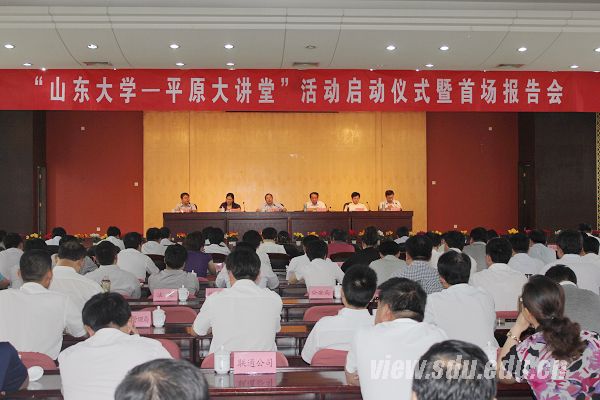 “山东大学—平原大讲堂”由马克思主义学院在职教育中心精心准备和积极筹划,活动将邀请山大知名专家教授,集中利用3个多月的周末时间举办专题讲座,内容涵盖了人文社会科学的诸多领域,如政治学、哲学、经济学、管理学、社会学、国学、法学等。重点培训领导干部宏观经济形势、区域经济建设、突发事件应对、团队建设、创新思维方面的基本理论、履职能力、文化修养等。