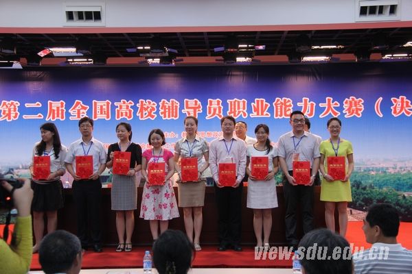 本届全国高校辅导员职业能力大赛分为初选、复赛和决赛三个阶段。经过全国各省市初选,来自32个赛区的96名选手进入全国复赛。山东大学蔡清香等3名辅导员代表山东省参加了第二届全国高校辅导员职业能力大赛的复赛和决赛。蔡清香在基础知识测试、博文写作、个人展示与特色介绍、主题班会等环节表现突出,以小组第二名的好成绩进入决赛,决赛分为主题演讲、案例分析、谈心谈话三个环节,经过紧张角逐,最终蔡清香获得三等奖。福建、黑龙江、湖北、山东、河南、河北等6省代表队获团体奖。