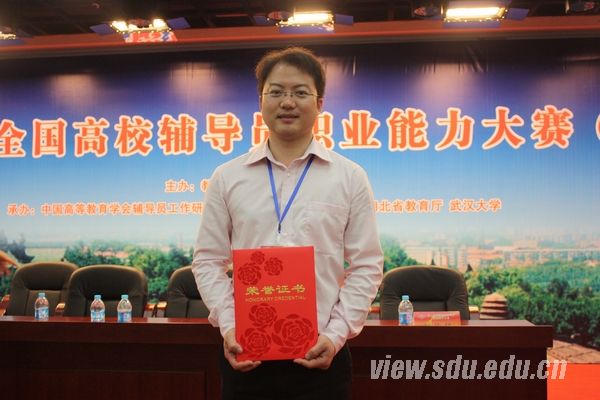 [本站讯]5月23至25日,第二届全国高校辅导员职业能力大赛复赛、决赛在武汉大学举行。大赛评选出一等奖3名,二等奖6名,三等奖9名,优秀奖78名。山东大学经济学院辅导员蔡清香获大赛三等奖。教育部思想政治工作司司长冯刚,全国高校辅导员工作研究会会长、山东大学党委书记李守信,湖北省教育厅厅长刘传铁,武汉大学党委书记韩进出席决赛比赛现场并发表讲话。