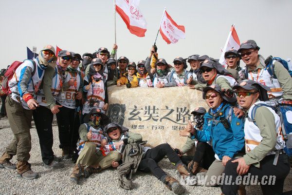 本次比赛是山东大学EMBA第三次组队参加商学院戈壁挑战赛。山东大学管理学院副院长陈志军教授和EMBA办公室主任刘冰教授带领山大EMBA戈八队员经历了比赛中的雅丹、盐碱地、骆驼刺等特殊地貌以及风沙、干燥、寒冷等恶劣天气的考验。要通过这些考验,除了身体素质的高要求,更重要的是强大的精神力量。正是这种“理想、行动、坚持”的力量以及所有戈友之间的深厚友谊和团队精神,创造了23所学校中为数不多的院校领导及领队全程完赛的成绩。在挑战赛中,队员们头顶炎炎烈日、脚踏漫漫黄沙,在茫茫戈壁之上,用脚步丈量理想,用行动挑战自我,团结互助,齐心拼搏,用顽强毅力展现山大人的风貌,彰显山大人的风采。