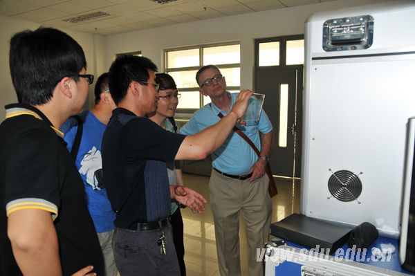 托马斯•兰德斯教授非常细致地参观了工程训练中心数控板料成形、先进技术制造、3D快速成型、机电一体化、电工电子、陶艺、大学生创新等训练模块,所到之处非常专业地提出诸如实践训练形式、课程设置、实践教学内容等专业问题。中心副主任刘新就工训中心的建设情况及功能定位作了详尽的介绍。经过参观和了解,托马斯•兰德斯教授对中心的实践教学规模及学生实训情况表示赞许,并对中心给予的热情接待表示感谢,希望能够和美国高校在工程实践教学方面展开交流与合作,增进沟通与友谊。中心副主任刘健一起参加活动。