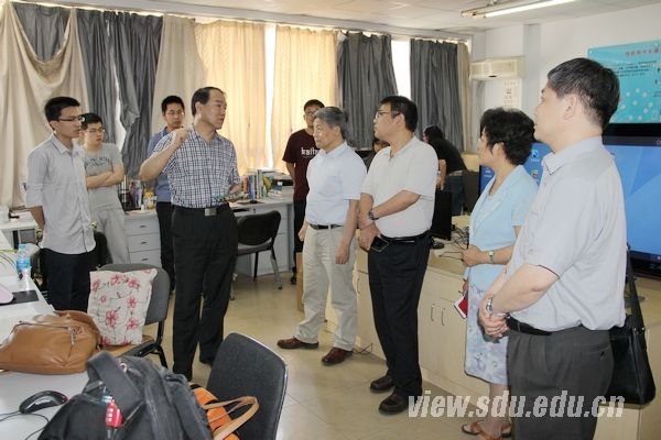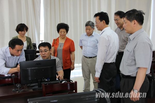董建勤一行在山东大学参观“中国虹计划”项目实验室,听取了袁东风教授对“中国虹计划”的发展背景、项目成果、下一步规划以及中国虹计划协同创新中心建设情况的介绍,并听取了研发人员对“中国虹计划”瘦客户端及信息服务平台的应用开发讲解,对“中国虹计划”提出并确立的新型信息化模式有了进一步了解。