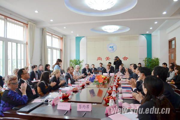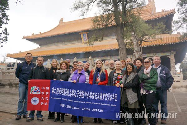 [本站讯]4月26日,由国家汉办、澳大利亚阿德莱德大学孔子学院和山东大学共同组织的南澳州中小学校长及教育官员访华团完成为期两周的教育交流和中华文化体验之旅。山东大学为访华团准备了教育考察和观摩、中华文化体验、孔子文化与中国基础教育讲座等专题活动,并安排访华团成员深入中国教师与学生家庭进行体验,与中方校长、教师、学生进行面对面交流。访华团在山东、北京等地进行实地考察与交流,与中国多所学校签订友好意向。