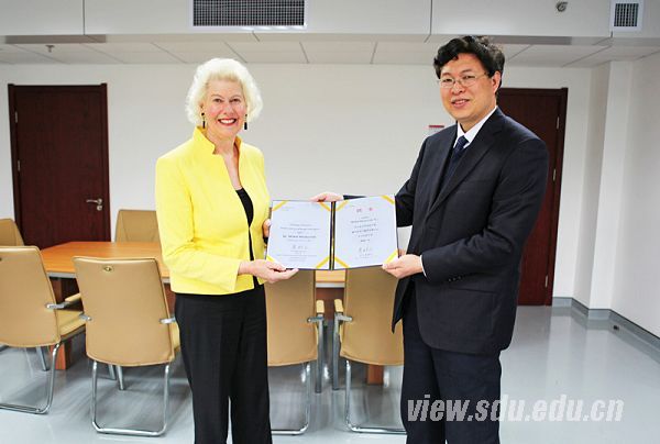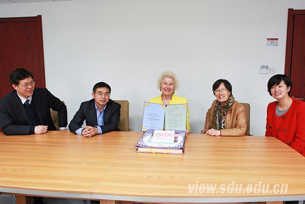 [本站讯]4月23日,山东大学教学促进与教师发展中心举行仪式,聘任斯坦福大学Michele Marincovich 博士为中心首席专家。本科生院常务副院长胡金焱、本科生院副院长兼教学促进与教师发展中心主任张树永、副主任李赛强出席聘任仪式,并为Marincovich 博士颁发了聘书。