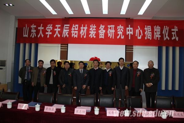 [本站讯]12月26日,“山东大学天辰铝材装备研究中心揭牌仪式”在济南天辰铝机制造有限公司会议室举行。济南天辰集团董事长侯秀峰和山东大学机械工程学院院长黄传真为“山东大学天辰铝材装备研究中心”揭牌。济南市高新区管委会副主任崔志强,山东大学机械工程学院党委书记仇道滨等出席揭牌仪式。