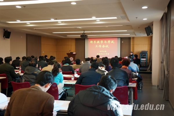 本科生院常务副院长胡金焱主持会议并讲话。他谈到,学校本学期考试工作即将开始,加强考试管理、考试纪律工作十分重要,影响到学校、学生的声誉。为做好考试工作,他强调四点:一是严禁研究生监考,一旦发现,上网通报;二是明确监考人员职责,一旦出现问题追究其责任;三是启用标准化考场,告之全校老师和学生;四是启动标准成绩评定体系,公平合理评价考试成绩。此外,在教学管理方面,他还谈到,在国家高度重视高等教育的形势下,希望各学院抓住机遇,广泛宣传,延揽资源,提升教学质量,服务山东大学人才培养。