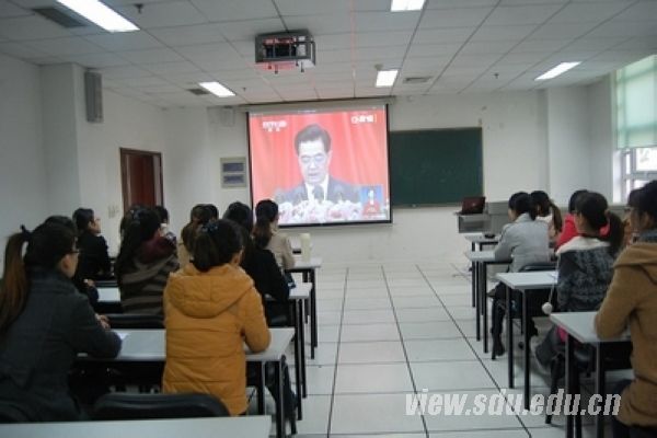 [本站讯]11月8日上午,护理学院组织全院教职工及学生在学院收看了十八大开幕式盛况。