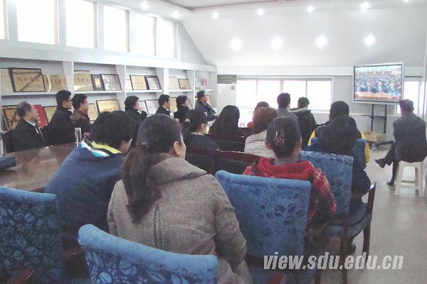 [本站讯]11月8日上午,二附中的会议室坐满了前来收看十八大开幕式的教职工,大家怀着激动的心情认真观看胡锦涛总书记作的题为《坚定不移沿着中国特色社会主义道路前进 为全面建成小康社会而奋斗》的报告。