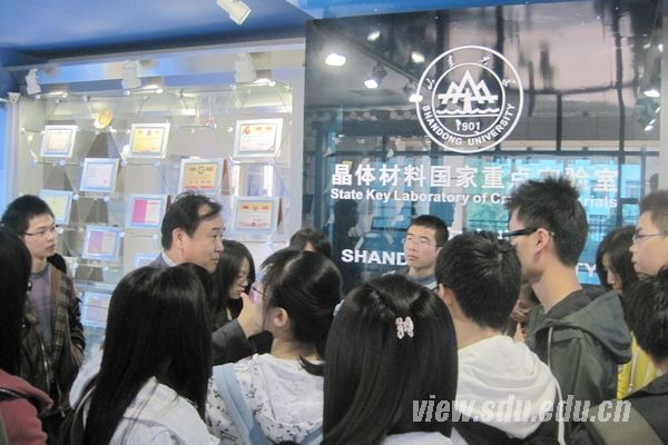 宣讲会后,同学们饶有兴趣地参观了晶体材料国家重点实验室,在参观时被各种晶体实物深深地吸引了,并且结合老师们详细的介绍对晶体和晶体生长知识有了进一步的了解。同学们还参观了多功能X射线衍射仪、X射线单晶衍射仪、扫描探针显微镜、扫描电镜、高分辨透射电镜以及晶体生长等相关设备及实验室。此次参观激发了同学们对学习知识和探求晶体世界奥秘的兴趣,拓宽了其专业视野。“蒋民华班”宣讲会的举行,为2012年首届“蒋民华班”学生选拔工作奠定了良好基础。