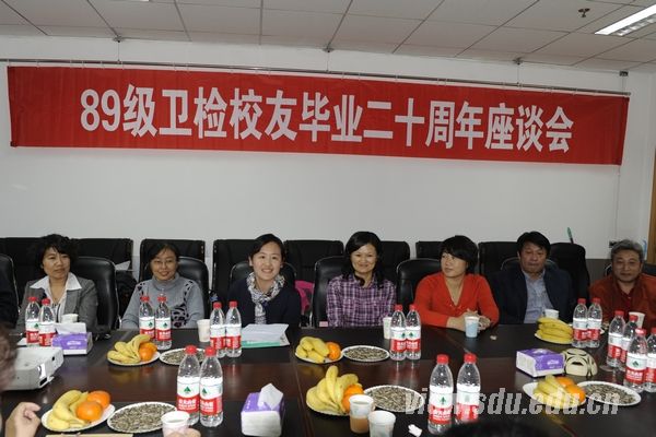 [本站讯]10月27日,公共卫生学院89级卫检校友毕业二十周年座谈会在趵突泉校区举行。公共卫生学院原党委书记王晋臣、原院长王洁贞,公卫学院党委书记王永平出席座谈会。会议由89级卫检班团支部书记、济南市铁路疾病预防控制中心业务办主任毕文婕主持。