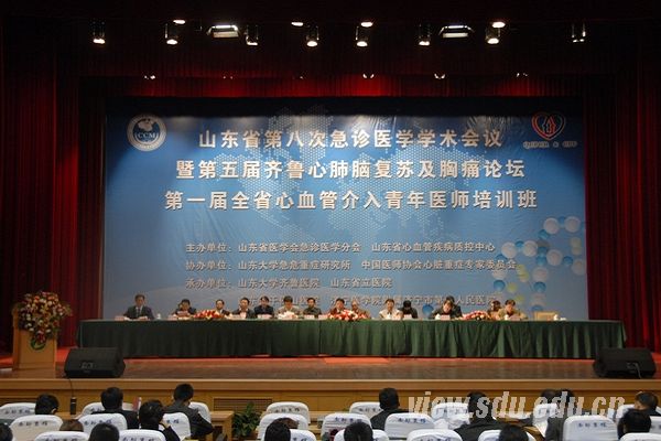 [本站讯]11月3至4日,山东大学齐鲁医院胸痛中心成立十周年庆典、第五届齐鲁心肺脑复苏及胸痛论坛暨第八届山东省急诊医学年会在济南南郊宾馆举行。会议就急性胸痛、急性心肌梗死区域化救治以及猝死病人的心肺脑复苏等领域的最新进展和最新研究成果、热点问题展开讨论。齐鲁医院党委副书记陈晓阳,副院长陈玉国出席会议并致辞,来自全国各地的500多名专家学者参加了会议。