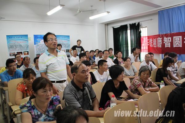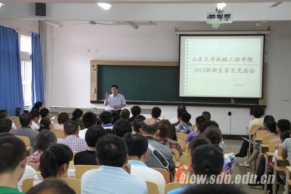 李剑峰在发言中对2012级新生顺利进入山大深造表示祝贺和欢迎,并对学院的教师队伍、人才培养体系、卓越工程师计划等进行了介绍。他强调,要把孩子培养成栋梁之才,就要加强学生和辅导员以及老师之间的联系。随后,黄传真用具体数字说明了机械学院的悠久历史和办学水平高的事实,他表示,学生成才之前,要先学会做人,学生在大学中一定要树立正确的人生观、价值观,并不断培养自己的自学能力。王勇就毕业生去向、新生在大学中的适应情况、本科生的教学计划等进行了介绍,使新生家长对学院的教育理念、教育要求和教育方式等有了更多更全面的了解。刘琰特别讲到,在大学中同样不能忽略学习,学习是基础。在这个新的群体中,所有的学生都很优秀,竞争压力会相应增大,希望家长能够继续多多关心鼓励孩子,多跟辅导员交流,多关注学生的学习情况。在进入家长提问环节,新生家长们向学院领导询问了女生在机械行业的就业情况、专业分流等事宜、卓越班的选拔制度、家长可以通过什么途径来了解学生的学习情况、如何协调好学习和丰富多彩的课余生活的关系等问题。学院领导对这些问题都进行了耐心详细的解答,新生家长们对这些问题的解答非常满意。