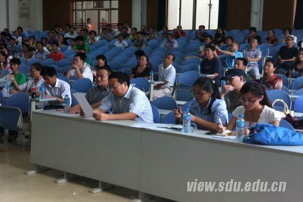 徐向艺代表学院对前来参会的新生家长和2012级新生表示欢迎。他以“历史老、规模大、学科门类齐全”为关键词,从学校概况、机构设置、人才培养、师资队伍、招生就业等方面对山东大学进行了较为全面的介绍,并在此基础上介绍了管理学院的特色专业、学科建设等,使广大家长对山东大学及管理相关专业有了更深层次的了解。左金朝从三次社会变革、三校强强合并、三地办学、三甲排名四个角度讲解了山东大学的办学历史和办学特色,同时就“怎样学习”给了新生及家长一些中肯的建议,希望在广大家长的配合下,12级新生们能够不负四年大学时光,学有所成。