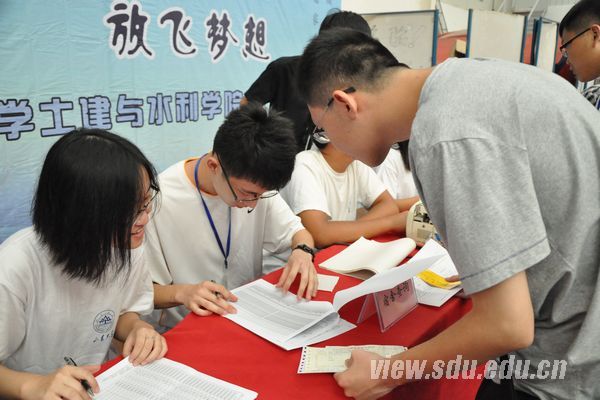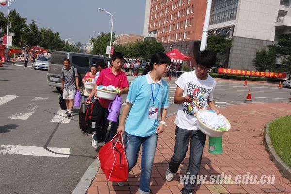 温馨服务,凸显以人为本。学院购置了六顶帐篷,为来自偏远地区的新生家长建立“爱心小屋”,解决住宿难题。新生寄语箱为每一位新生送去学长学姐的祝福,鼓励他们积极面对大学生活,在山大扬帆起航。金榜题名签字板引人注目,让新生感受到作为山大人的骄傲。为了让新生和家长记住报到的难忘时刻,志愿者在体育馆前给家长和新生合影留念。迎新现场,学院还设置了家长休息区和咨询台,让远道而来的家长饮水休息,并真正做到“一对一服务”,为家长解疑答惑。校园宣传片现场循环播放,为新生介绍学校学院基本情况、校区布局以及生活服务,帮助学生尽快熟悉大学校园,融入大学生活。