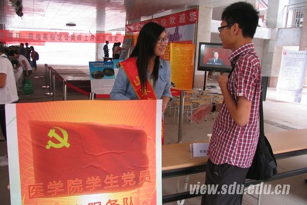 [本站讯]丹桂飘香,荷花满塘。8月31日,医学院迎来新百年的首批新生。学院党委副书记牟道玉,学生工作办公室、团委相关老师,2012级新生辅导员及医学院学生会全体工作人员经过精心的准备,有条不紊地开始了2012年迎新工作。 本次迎新工作在软件园校区进行,陌生的环境是迎新工作的第一个挑战。为了圆满完成任务,全体工作人员分批赴软件园校区熟悉校园内外环境,召开现场办公会讨论场地布置、迎新流程设置等。经过充分的准备,此次迎新工作延续采用一条龙接待的方式,从校车接送点到迎新现场报到,再到搬运行李入住宿舍,都有医学院迎新队伍的身影。在“学生党员先锋服务队”旗帜的映照下,全体工作人员分工合作、各司其职,以微笑迎接每一位新同学,帮助他们完成各项报到程序,并主动告知新生近期的注意事项,整个报到过程井然有序。 此外,学院还在迎新现场的家长休息区中首次以LED屏视频播放的形式向新生及家长们展示了医学院百年院庆纪录片、百年院庆歌舞晚会及校园精品活动风采,并通过展板宣传及现场讲解等多种方式,让新生及家长在排队等候和休息的过程中对医学院百年历程及学院学生的学习生活有了初步的了解。在“大学的第一课是独立,请让新生独立走过迎新通道”的标语前,很多家长微笑着将证件交到孩子手中;在“心愿墙”下,工作人员邀请新生许下未来的目标,家长则写下对学生的祝福与期望,让百年杏林的新一代年轻人在进校第一天即在“博施济众、广智求真”的院训下立鸿鹄之志,志存高远。
