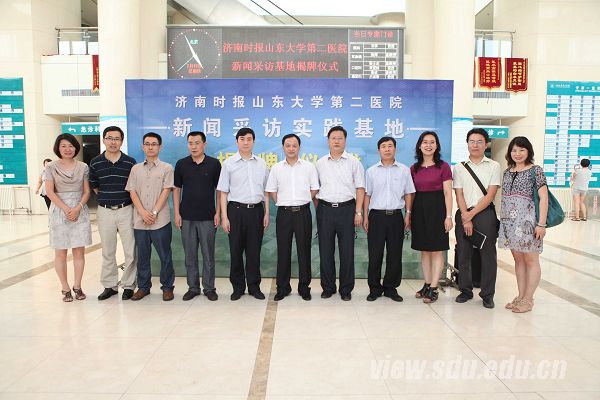 活动由医院党委副书记孔令华主持。曲波在致辞中对济南时报山大二院新闻采访实践基地的成立表示诚挚祝贺。他说,第二医院历来与济南时报合作良好,济南时报充分利用平台优势,为医院在新业务新技术的宣传、“三好一满意”活动的开展、公立医院形象塑造等各方面架起了一座与社会公众沟通的桥梁,使医院更好地服务社会。新闻采访实践基地的建立对济南时报和山大二院都具有重要的意义,不仅为济南时报深入卫生行业诊疗一线,推出更加生动鲜活、贴近群众的卫生新闻报道提供了良好平台,而且为全面展示山大二院在医改大背景下为群众健康保驾护航的风采,全面提升医院整体形象搭建了桥梁。