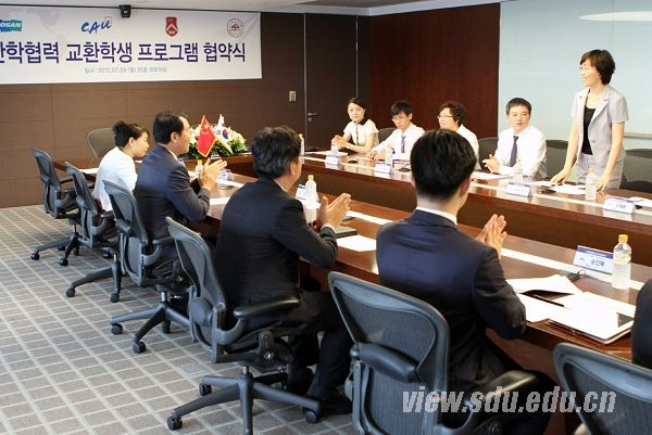 7月9日上午,机械学院与韩国斗山集团院企合作协议签字仪式在韩国首尔斗山集团总部25层会议室举行。签约仪式中,斗山集团董事兼总裁Kim Yong-Sung先生、机械学院副院长王勇、韩国中央大学工程学院院长Lee Jae-eung教授、韩国西江大学的研究事务主管Kim Nak-soo教授分别发言。大家一致认为,山东大学、韩国斗山集团、韩国中央大学、韩国西江大学的强强联合,一定能够在人才培养、学生就业、学术交流和文化交流等各方面取得积极的成效。根据协议规定,斗山集团将每年在机械学院本科生中选拔学生到韩国西江大学和中央大学访学一年,并给予全额学费和奖学金资助,学生毕业后根据协议规定赴斗山集团工作。签字仪式结束后,访问团一行还参观了斗山工程机械仁川工厂。