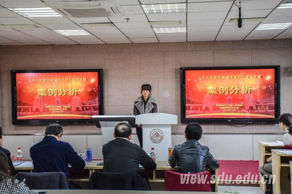 [本站讯]11月14至18日,山东大学第四届辅导员职业能力大赛在中心校区举行。本届大赛共有32名辅导员报名参赛,经过激烈角逐,外国语学院王璐璐、哲学与社会发展学院李永卫、政治学与公共管理学院桑伟林获得一等奖;物理学院朱强,能源与动力工程学院任伟、赵冬雪,法学院尹上获得二等奖;公共卫生学院孔令奇、软件学院姚蕊、历史文化学院寸凯宁、管理学院胡尚潇、材料科学与工程学院何彪获得三等奖。