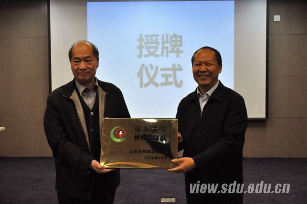授牌仪式上,王艳楠为山东大学桥牌协会授牌,徐大义为“山东大学桥牌活动站”授牌,山东省棋牌运动管理中心主任、山东省桥牌运动协会副主席马军鸣向山东大学桥牌协会赠送了桥牌用具。授牌仪式后,中国桥牌终身大师、天津市桥牌协会秘书长伍珉为在场同学介绍了桥牌起源与发展历史,具体讲解了桥牌基础知识和桥牌术语,还当场利用专业桥牌学习软件指导大家玩桥牌,并诚挚邀请大家参与桥牌活动,珍惜学习桥牌的机会。山东大学团委书记马晓琳等参加活动。