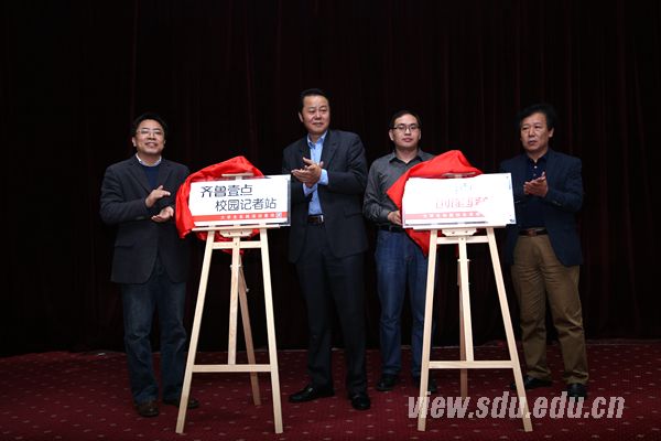 [本站讯]10月27日晚,由山东大学、齐鲁晚报·齐鲁壹点和创途网共同主办的山东大学·齐鲁壹点创途驿站揭牌仪式、齐鲁晚报·齐鲁壹点校园记者站揭牌仪式在山东大学中心校区举行。山东大学党委宣传部部长李平生,山东大学创新创业学院常务副院长、本科生院院长赵炳新,山东大学学生就业创业指导中心副主任肖祥,山东大学经济学院党委副书记齐山华,齐鲁晚报常务副总编辑、日新传媒董事长胡忠华,齐鲁晚报全媒体调度中心副主任、齐鲁壹点事业部总监吕冰等出席了本次活动。