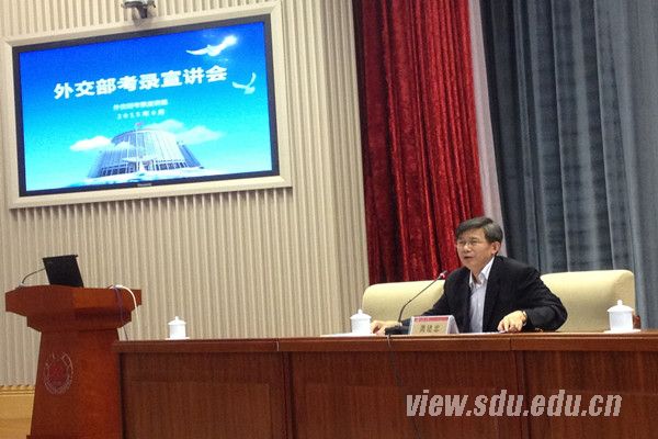 [本站讯]6月5日,针对山东大学2016届毕业生的外交部公务员考试录用宣讲会在中心校区举行,会前举行了外交部向山东大学赠书仪式。山东大学校领导方宏建,中国公共外交协会副会长、中国驻加纳前大使龚建忠出席活动并讲话。