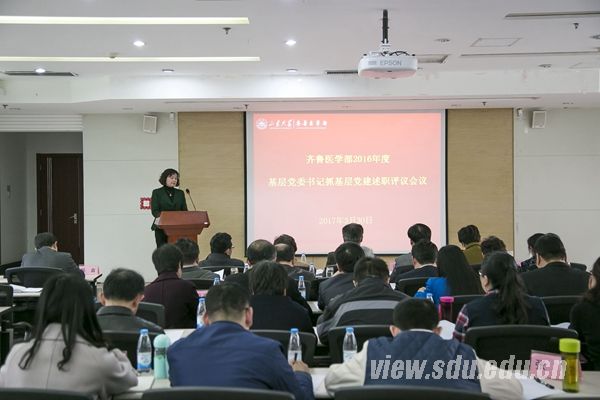 [本站讯]3月30日,按照学校党委工作部署,齐鲁医学部党工委举行2016年度基层党委书记抓基层党建述职评议会议。齐鲁医学部党工委书记侯俊平对参加述职的8个单位党组织书记进行逐一点评并作总结讲话,党工委副书记陈鑫主持会议。