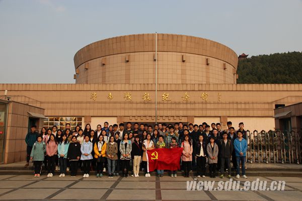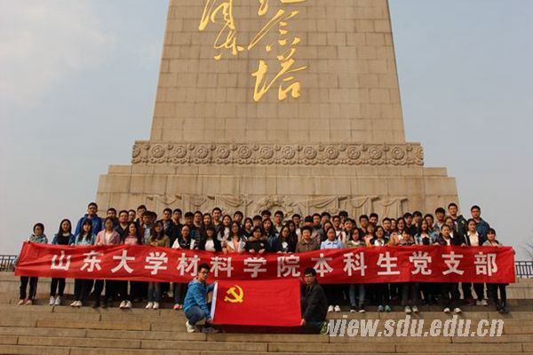 3月24日,材料学院本科生党支部组织党员和入党积极分子到英雄山爱国主义教育基地进行本科生党支部红色教育活动,王丽君出席活动。下午,全体人员抵达英雄山景区。同学们拾级而上,于革命英雄纪念塔前集合。然后同学们纷纷抬起头来,瞻仰这座由革命烈士的铮铮铁骨铸成的纪念塔。全体人员在塔前合影留念。之后进入英雄山公园内的济南战役纪念馆参观学习,讲解员通过展板和部分文物向同学们介绍了济南战役的始末,同学们认真倾听,纷纷表达了自己对革命烈士的景仰与钦佩之情。在全景画大厅,同学们观看了以全景画形式展现的济南战役的过程。很多同学表示自己的内心受到了极大的震撼,向在战争中牺牲的革命烈士寄托哀思。整个活动在庄严的气氛中结束,全体人员在纪念馆前再次合影留念。