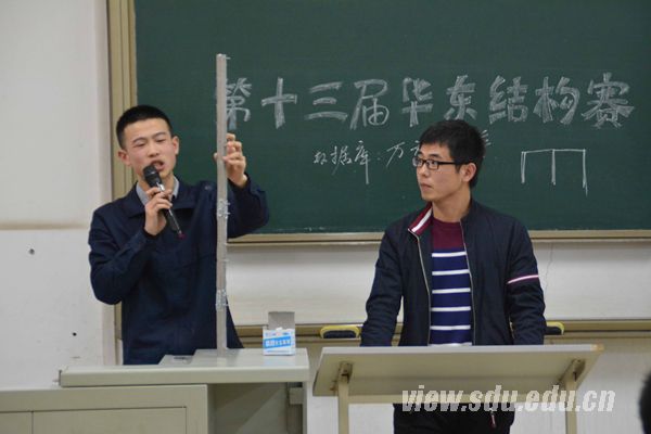 晚6时30分,宣讲会正式开始。首位主讲人向同学们分享自己参加第十一届华东结构赛的亲身经历。她挑出当年参赛的几个典型模型,向大家逐一分析它们的优缺点。同时,她还讲述了当时出现的问题以及解决方法,着重提出模型规划的问题,提醒同学们制作模型时应懂得检验对比。接着,第二位主讲人介绍本届结构赛的相关内容。在会前,他还用心地制作了一个模型的半成品。在现场通过实物展示的方式向同学们介绍这次大赛所需要的参赛作品,这使得同学们对本次比赛有一个更加直接的了解。借助实物,他介绍了结构模型基本的制作方法与保护措施。第三位主讲人详细介绍了本次比赛所需的材料和工具,就模型制作和比赛过程中可能出现的问题提出了自己的小建议。在最后的答辩环节,同学们都积极地提出自己的问题。