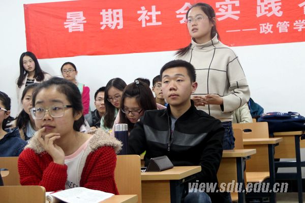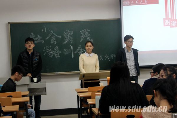 [本站讯]3月24日,政治学与公共管理学院社会实践部在兴隆山校区举办了社会实践培训会,具体讲解了假期社会实践的注意事项并进行了经验交流,2015级政管新生参与了本次培训会。 培训会上,2013级李硕介绍了自己的假期支教经历,他用照片给同学们展示了美丽的南国风光和活泼可爱的孩子们,他还谈到了支教最重要的是端正心态,建议大家在选择支教前要充分考虑自己的目的和想要得到的收获,从而做出正确的选择。而关于职业角色体验,2013级的龙菲则结合自己在昆明东珠地产的销售经历,从如何选择一份工作到投递简历再到工作过程,都给出了一系列具体的建议。最后的社会调研经验交流,2013级的朱宪则分享了自己之前关于城镇化过程中城乡结合部问题的社会调研报告,从调研选题、调研时间安排以及调研方法和答辩等方面,进行了详细讲解,并建议大一的同学结合国家大政方针,以小见大,从熟悉的事物切入选题,同时也要注重文献查阅和资料收集,将自己的所学应用于实践。会议最后,学长学姐们对大一学生提出的社会调研如何组队、怎样处理支教与双学位上课时间的冲突,以及三类社会实践如何妥善安排等问题一一作了解答。 社会实践对于大一新生来说,很陌生也很迷茫。而通过此次社会实践培训会,可以让学生收获经验并明白它的意义,从而在假期中更好地投入到社会实践,在实践中学以致用,并不断丰富和完善自己。