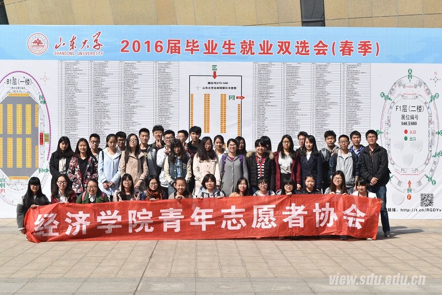 [本站讯]3月26日,经济学院青年志愿者协会组织学院2013级、2014级共41名志愿者,前往中心校区为山东大学2016春季双选会提供志愿服务。