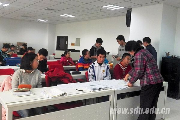 [本站讯]近日,山东大学与山东省实验中学联合设立的创新实验班举行了数学方向本学期的中期考核活动。考核由实验班导师数学学院教授张天德负责,副教授王玮组织,实验班数学方向的全体学生参加了考核。