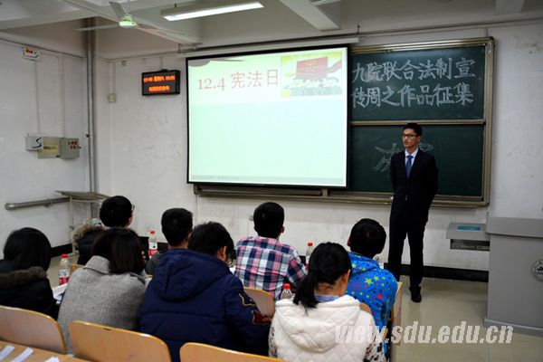 [本站讯]12月5日,山东大学九院联合法制宣传周之作品征集大赛决赛于兴隆山校区举行。本次大赛由控制科学与工程学院和土建与水利学院联合承办。