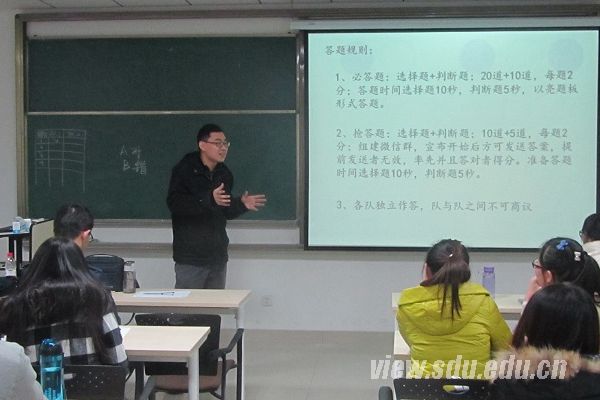 [本站讯]为增强研究生安全防范意识和应急自救能力,11月18日,数学学院在中心校区举办研究生安全知识竞赛。本次活动由数学学院主办,数学学院研究生会学术宣传部承办,2015级研究生张吉臣担任主持,来自2015级硕士研究生各班的7支代表队共21名选手参加了竞赛活动。