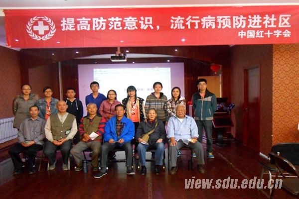 [本站讯]10月27日上午,山东大学红十字会在济南市幸福世家日间照料所举办“流行病预防进社区”科普讲座,宣传夏秋季常见流行病预防的相关知识。红十字会的11名公卫学院队员参加活动。